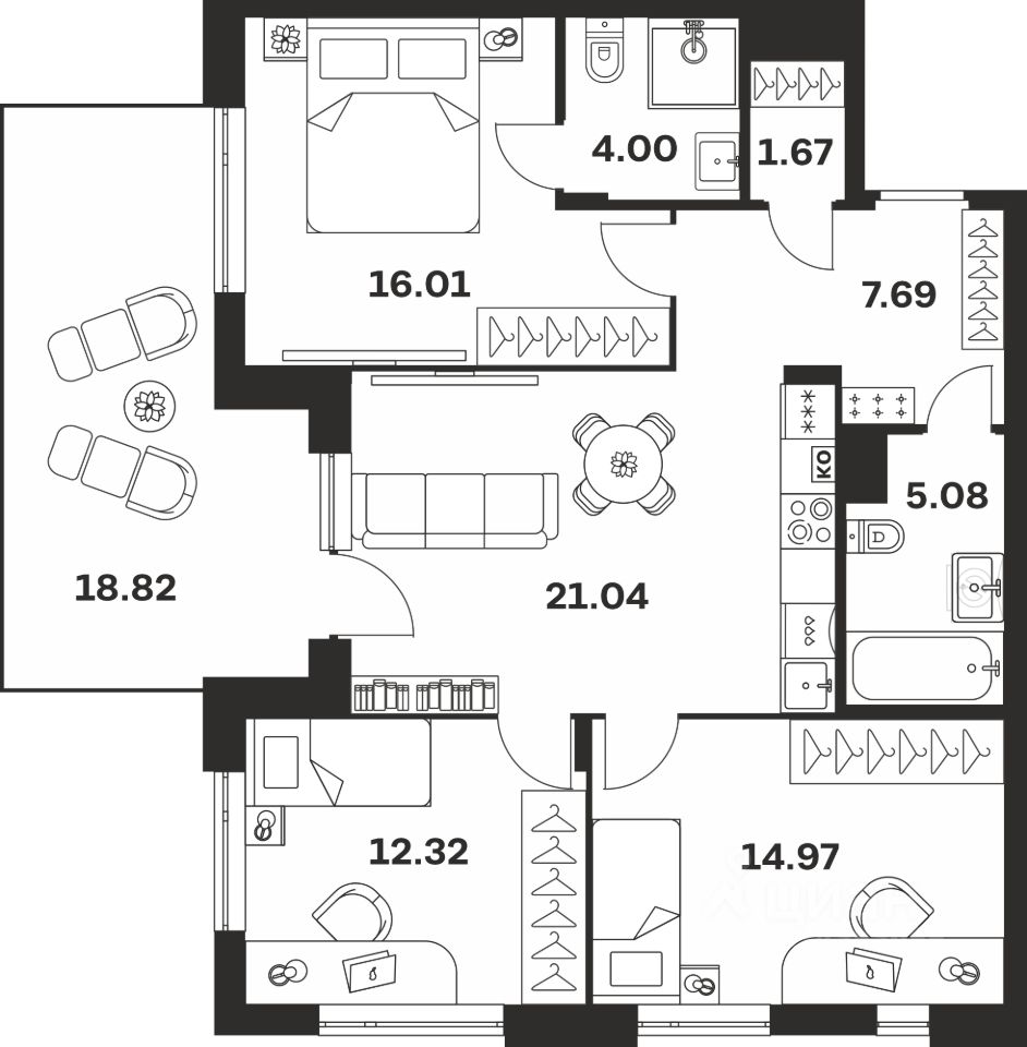 Жилая площадь82,8 м²