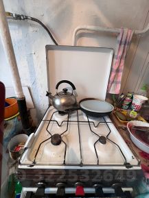 • Газ: привозной в баллонах, трубы заведены в квартиру и подключена газовая 2-х конфорочная плита (в рабочем состоянии). Железный шкаф с газовым баллоном на улице под окном кухни.