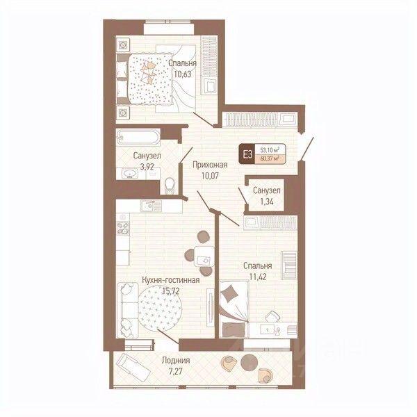 Продаётся 2-комнатная квартира в строящемся доме (Корпус 3), срок сдачи: IV-кв. 2025, общей площадью 56.74 кв.м., на 7 этаже. РАСПОЛОЖЕНИЕ