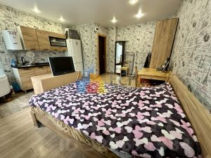 Номер в базе: 58257. Продаём большую комнату со всеми коммуникациями, полностью переделанную в квартиру-студию со своими гардеробной, кухонной, душевой и спальной зонами. В квартире всего три комнаты, две из которых принадлежат доброй пожилой паре, которые в дачный сезон (с мая по октябрь) живут на даче. Единственное общее удобство чистый туалет. Дом толстостенный (70 см) кирпичный. Окна выходят на тихий озелененный чистый двор. Котельная рядом с домом, топит очень хорошо! Комфортный средний этаж, квартира не угловая и не торцевая. Новая медная электропроводка с хорошим запасом мощности, рассчитанным и на весь свет с оборудованием, и бойлер, и на духовой шкаф, и стиральную машину, есть автоматы отключения. Свет в комнате удобно распределен по отдельным зонам и регулируется соответственно. Счетчик свой, все квитанции приходят свои на комнату. Все стеклопакеты заменены на качественные тройные, прекрасная тепло и шумоизоляция. Напольные покрытия ламинат. Комната полностью укомплектована всей необходимой мебелью и техникой. Дверь в комнату хорошая металлическая. В этом году был капитальный ремонт крыши, заменены окна в подъезде, планируется монтаж шлагбаума и на следующий год запланирован ремонт фасада дома. В шаговой доступности есть всё необходимое для комфортной жизни от образовательных учреждений, магазинов, супермаркетов и остановок транспорта до аптек, пунктов маркетплейсов, салонов различных услуг, спортивных учреждений и Кировского сквера. 5-7 минут от дома до центральной части города. Взрослый собственник, прямая продажа, без обременений. Звоните, организуем показ в удобное время