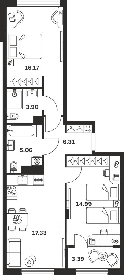 Предчистовая — остаётся установить сантехнику, розетки, двери и навести красоту: поклеить обои и уложить на пол покрытие