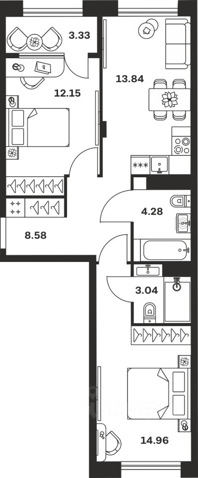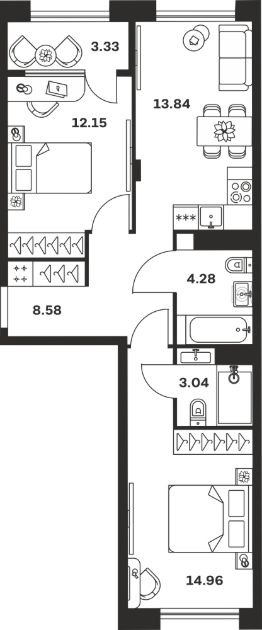 Продается 2-комн. квартира, 60,18 м²