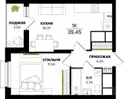 Общая площадь39,45 м²