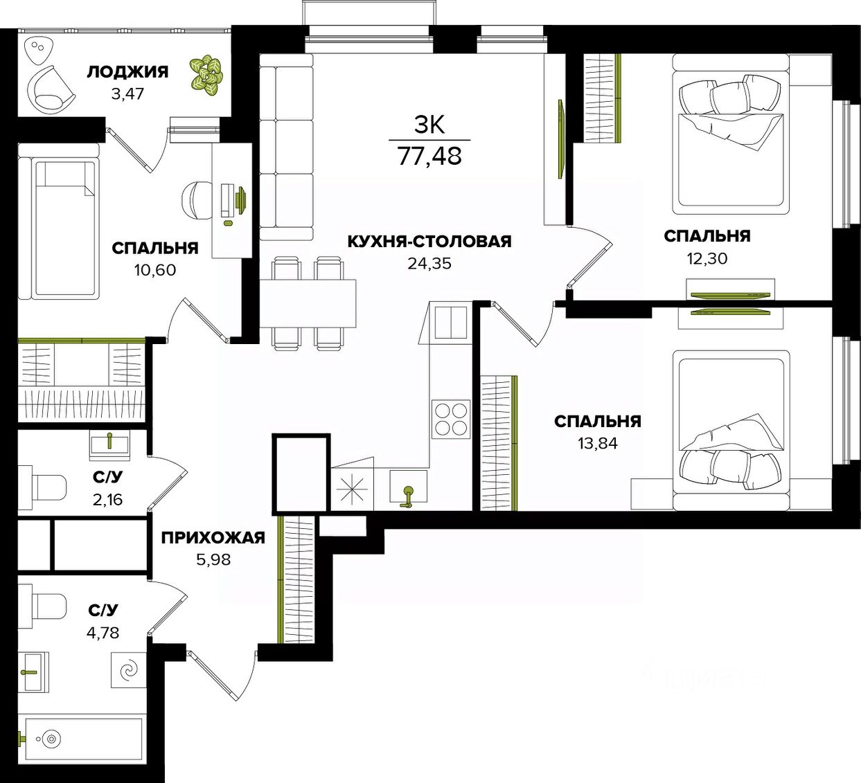 ЖК Семейный бульвар -2, ГП, 1, квартира 84