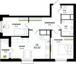 Общая площадь64,83 м²