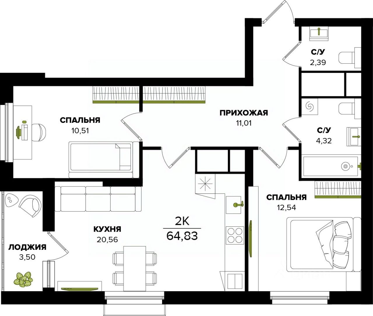 ЖК Семейный бульвар -2, ГП, 1, квартира 155