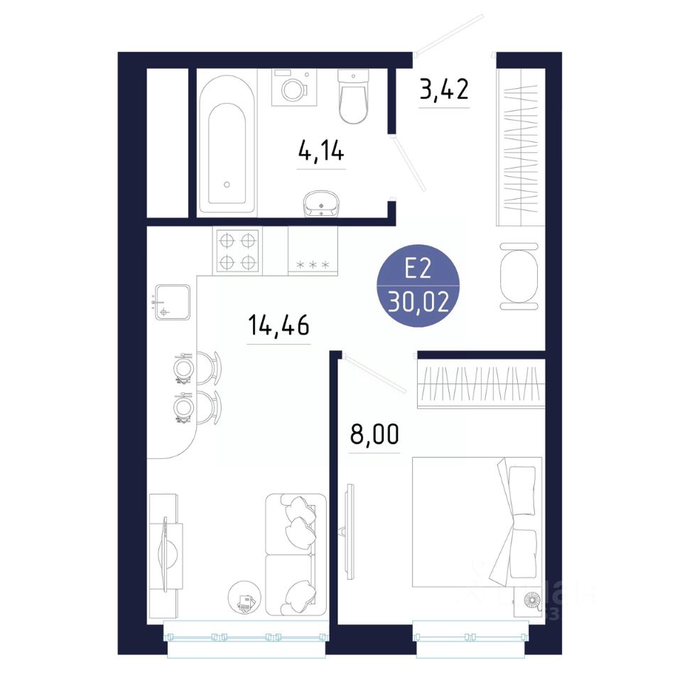 Общая площадь30,02 м²
