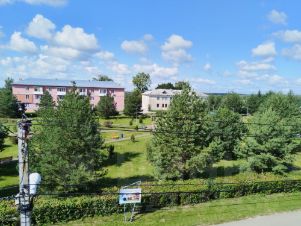 большой балкон , с остеклением и хорошо отремонтирован , выходя на него не только приятно попить кофе , но и насладиться парковой зоной с соснами ,