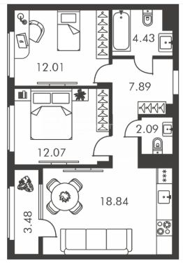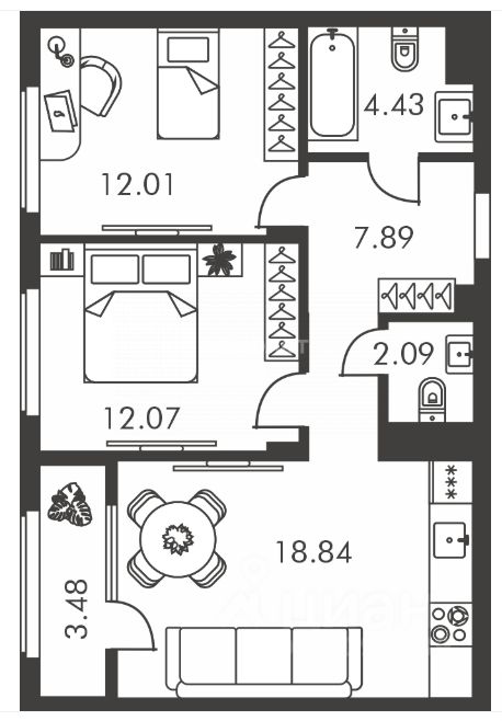 58,5 м²