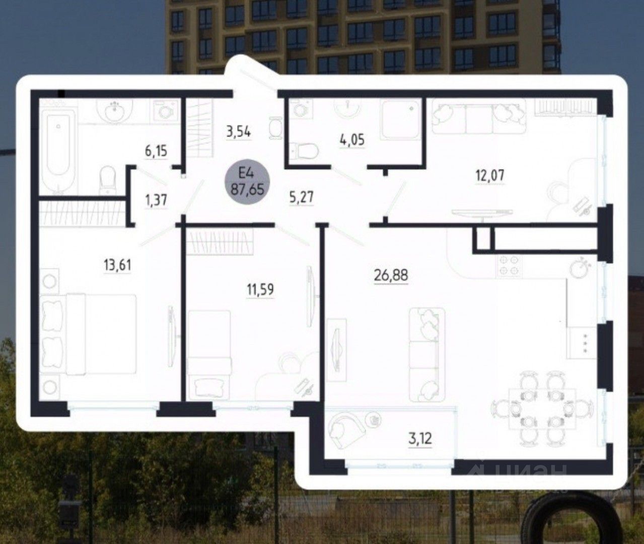 Арт. 116613639 Продается ОТ ЗАСТРОЙЩИКА евро 4 - 87,65 кв. м., с отделкой в ЖК "Сурикова 2.0"
