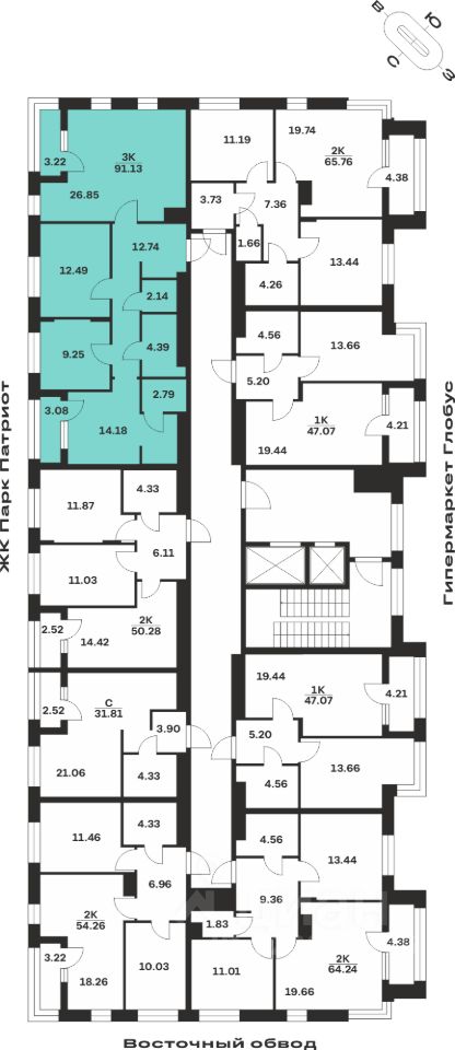 Общая площадь91,13 м²