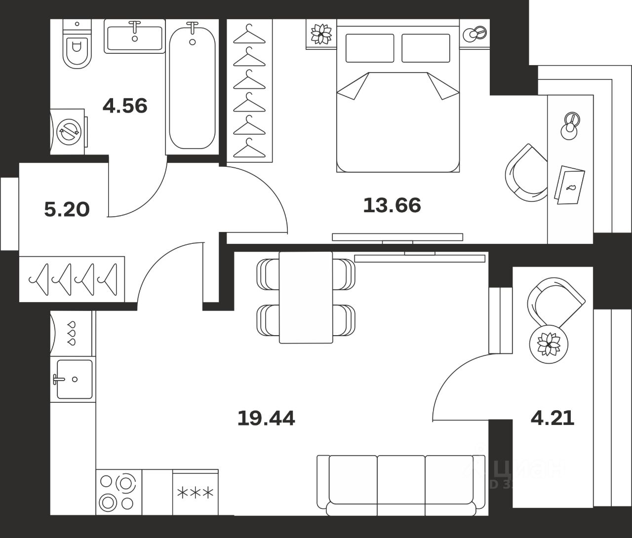 Жилая площадь13,7 м²