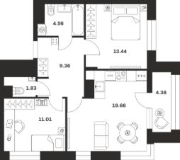 Общая площадь64,24 м²