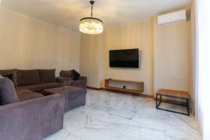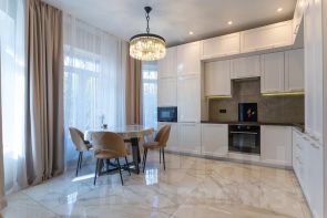 Квартира полностью меблирована, укомплектована высокачественной бытовой техникой. Выполнен авторский ремонт. Из окон открывается вид на центр города.Огороженная охраняемая территория.