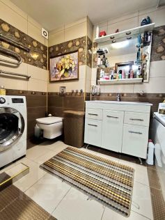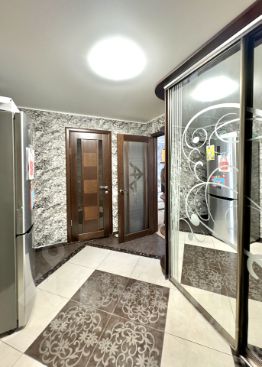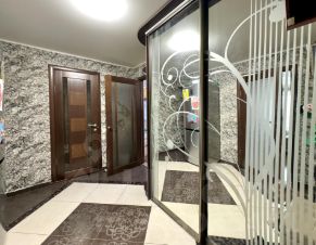 В коридоре большой красивый встроенный шкаф. Санузел совмещенный и большой, все в кафеле!