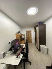 В комнате полностью заменена электрическая проводка. Чисты обои, на полу ламинат, потолок отремонтирован.