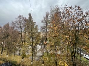 Железобетонные перекрытия, окна и остекленный балкон выходят на зеленый сквер и во двор.