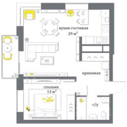 Просторная кухня-гостиная и обособленная спальня, есть возможность сделать 2 изолированные спальни - 4 окна на 2 комнаты - дополнительный простор для фантазии при планировании ремонта.