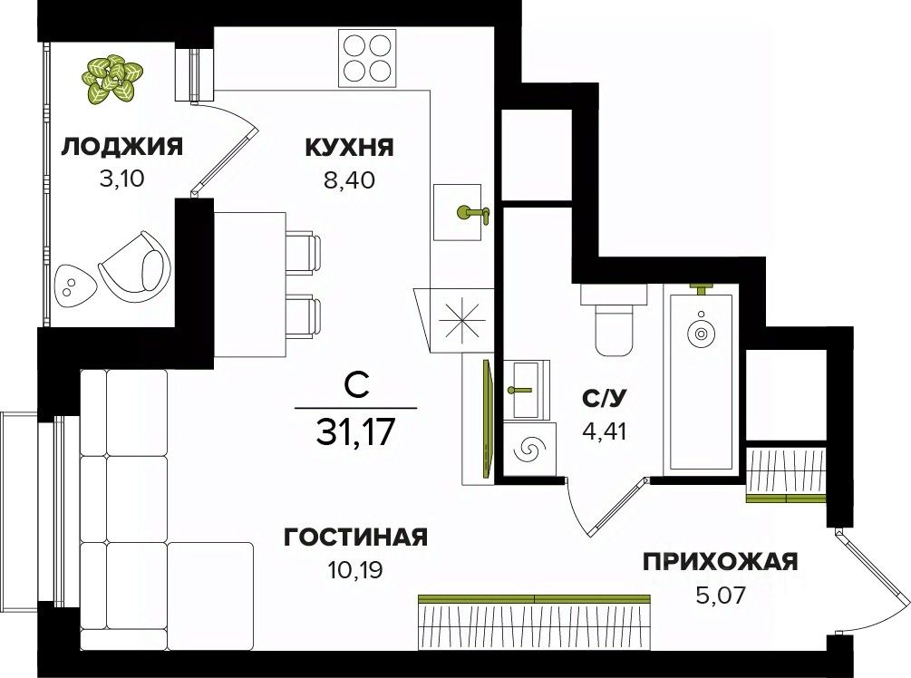 Общая площадь31,17 м²