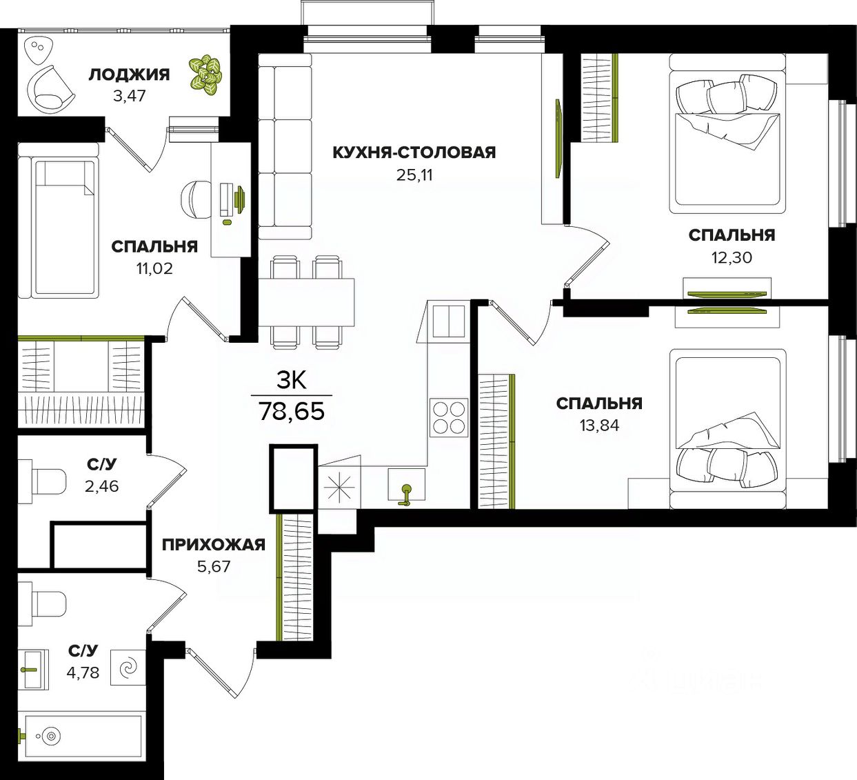 ЖК Семейный бульвар -3, ГП, 1, квартира 7