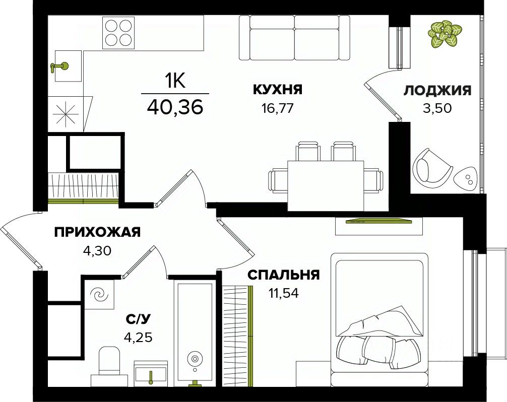 Общая площадь40,36 м²