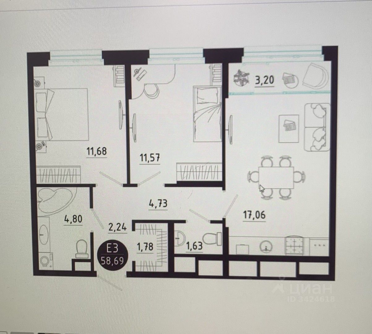 Арт. 111922698 Продается ОТ ЗАСТРОЙЩИКА просторная ЕВРО 3; 58,69 кв м дом "МЯТНЫЙ" в ЖК "Пряничная Слобода". ДОМ СДАЕТСЯ в ЭТОМ ГОДУ.
