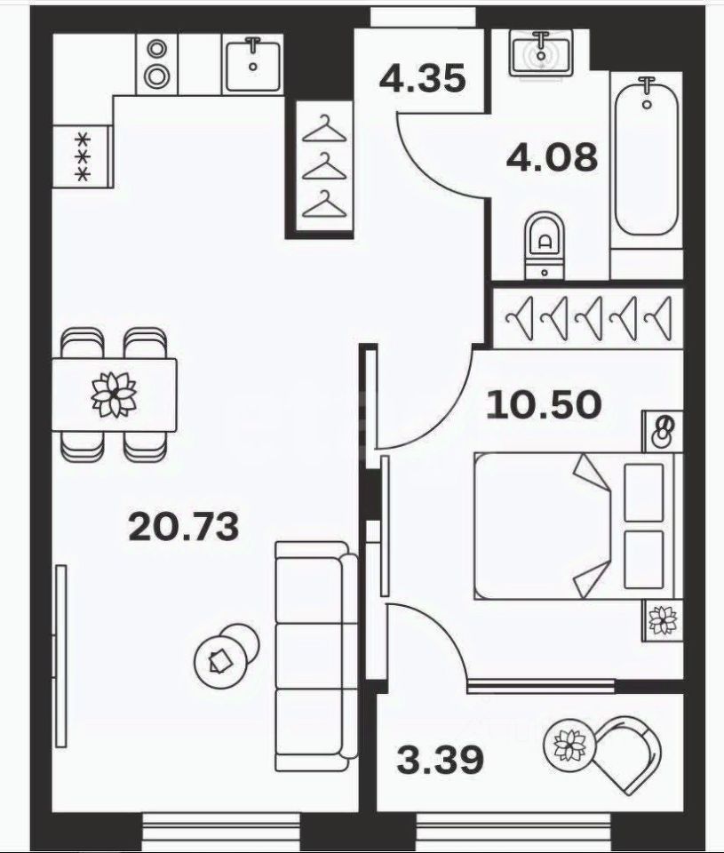 Планировка очень удачная: уютная спальня и светлая кухня-гостиная, где легко представить себя с чашкой кофе у окна.