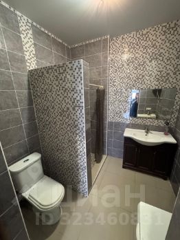 Санузел совмещенный, с душевым уголком, отделан керамической плиткой и плиткой-мозайкой.