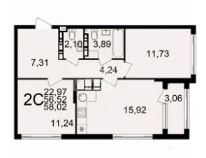 В продаже квартира Евро-3, 58 кв. м. Сдача дома в 2027 г.
