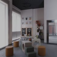 - Зона ожидания с мягкой мебелью, где можно встретить курьера или подождать такси