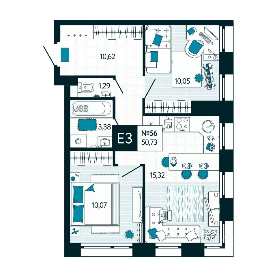Квартира правильной геометрической формы позволяет функционально использовать пространство. С лоджией или без выбор за вами!
