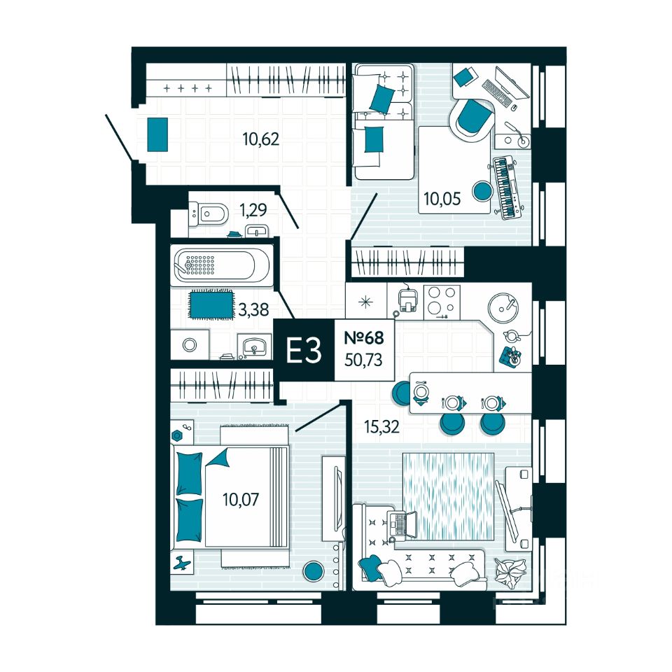 Квартира правильной геометрической формы позволяет функционально использовать пространство. С лоджией или без выбор за вами!