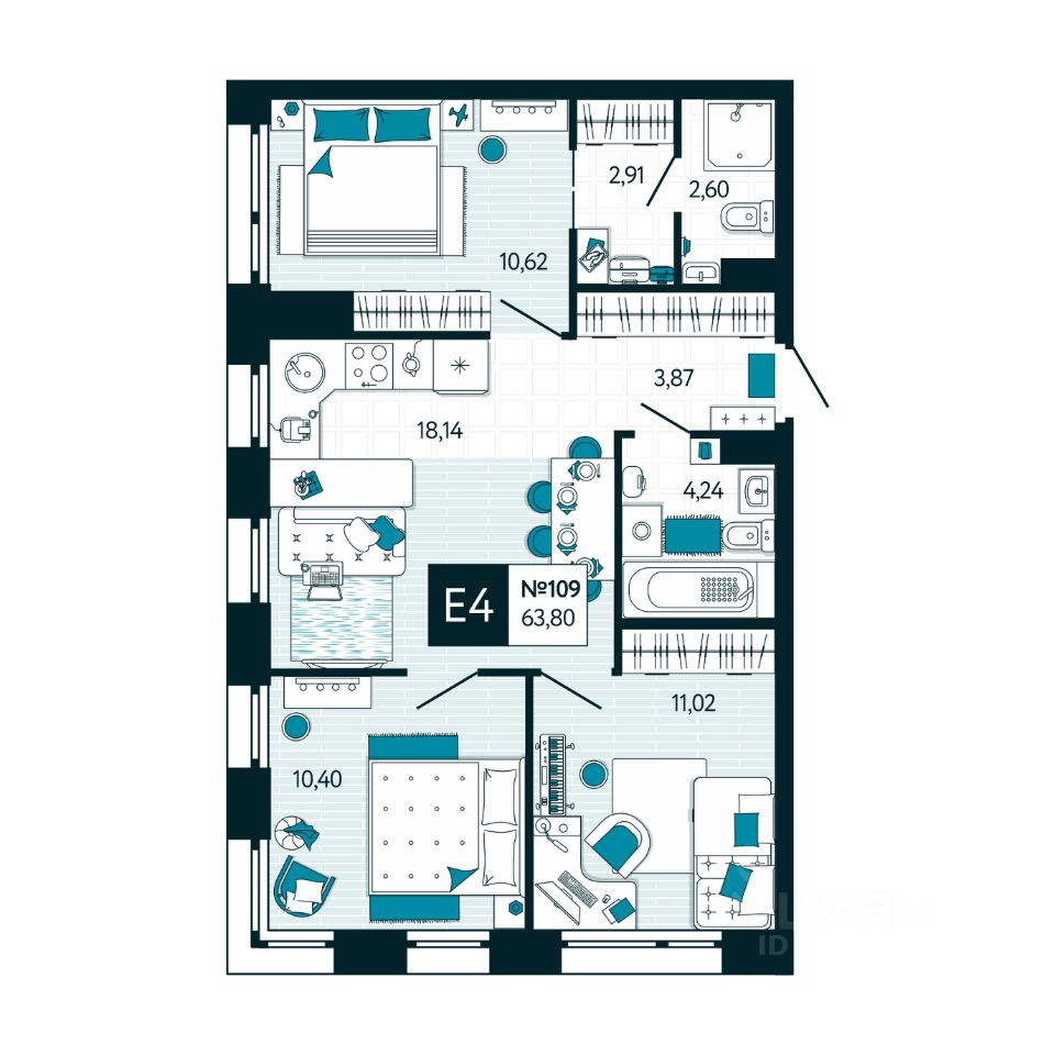 Квартира правильной геометрической формы позволяет функционально использовать пространство. С лоджией или без выбор за вами!