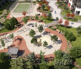 Богатая городская среда обеспечивает жителей всем необходимым в шаговой доступности, а первая линия квартала с разнообразными коммерческими помещениями дополняет городскую инфраструктуру.