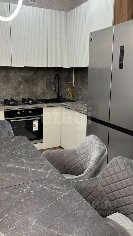В квартире остаётся мебель и техника (посудомоечная машина, холодильник sidе-by-sidе, варочная панель, духовой шкаф, стиральная машина).