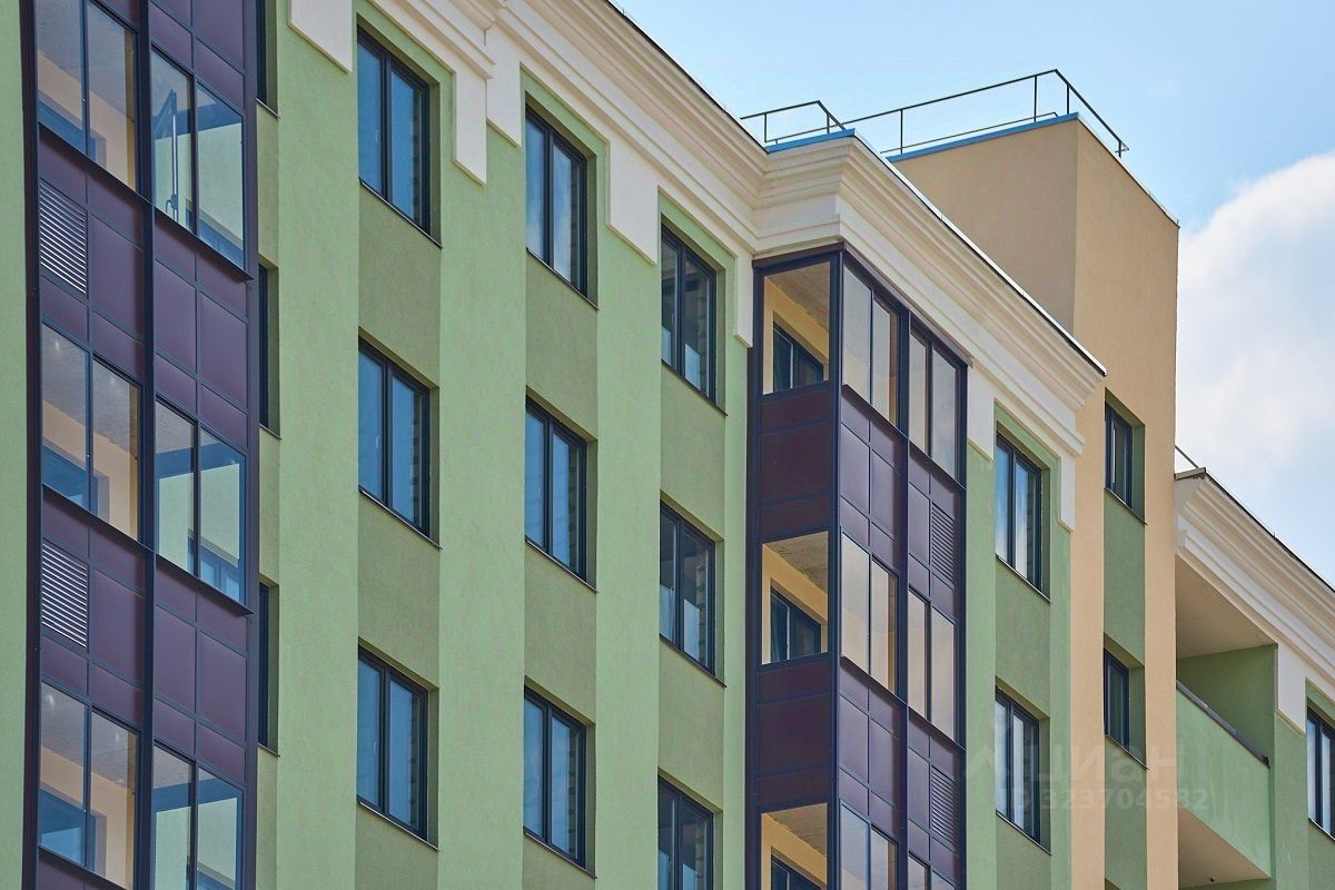 Яркие и сочные цвета фасадов дополняют классические элементы окон и парапетов. А единую концепцию фасадов поддерживают застекленные лоджии и оконные профили в коричневом цвете.