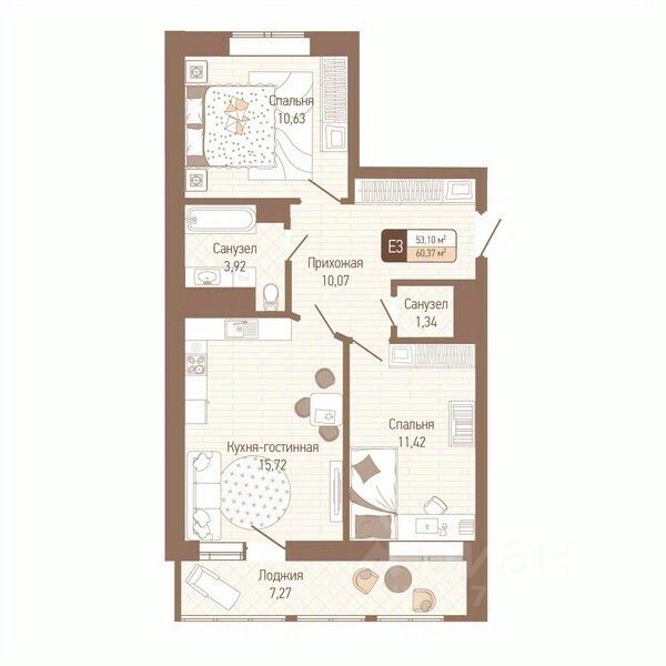 Продаётся 2-комнатная квартира в строящемся доме (Корпус 3), срок сдачи: IV-кв. 2025, общей площадью 56.74 кв.м., на 12 этаже. РАСПОЛОЖЕНИЕ