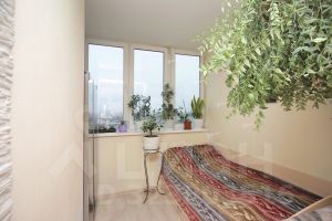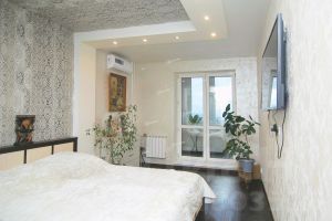 В спальне широкая кровать, которая имеет подъемный механизм. Из спальни выход на застекленный балкон, с которого открывается красивый панорамный вид на город. На балконе, также, имеются шкафы для хранения.