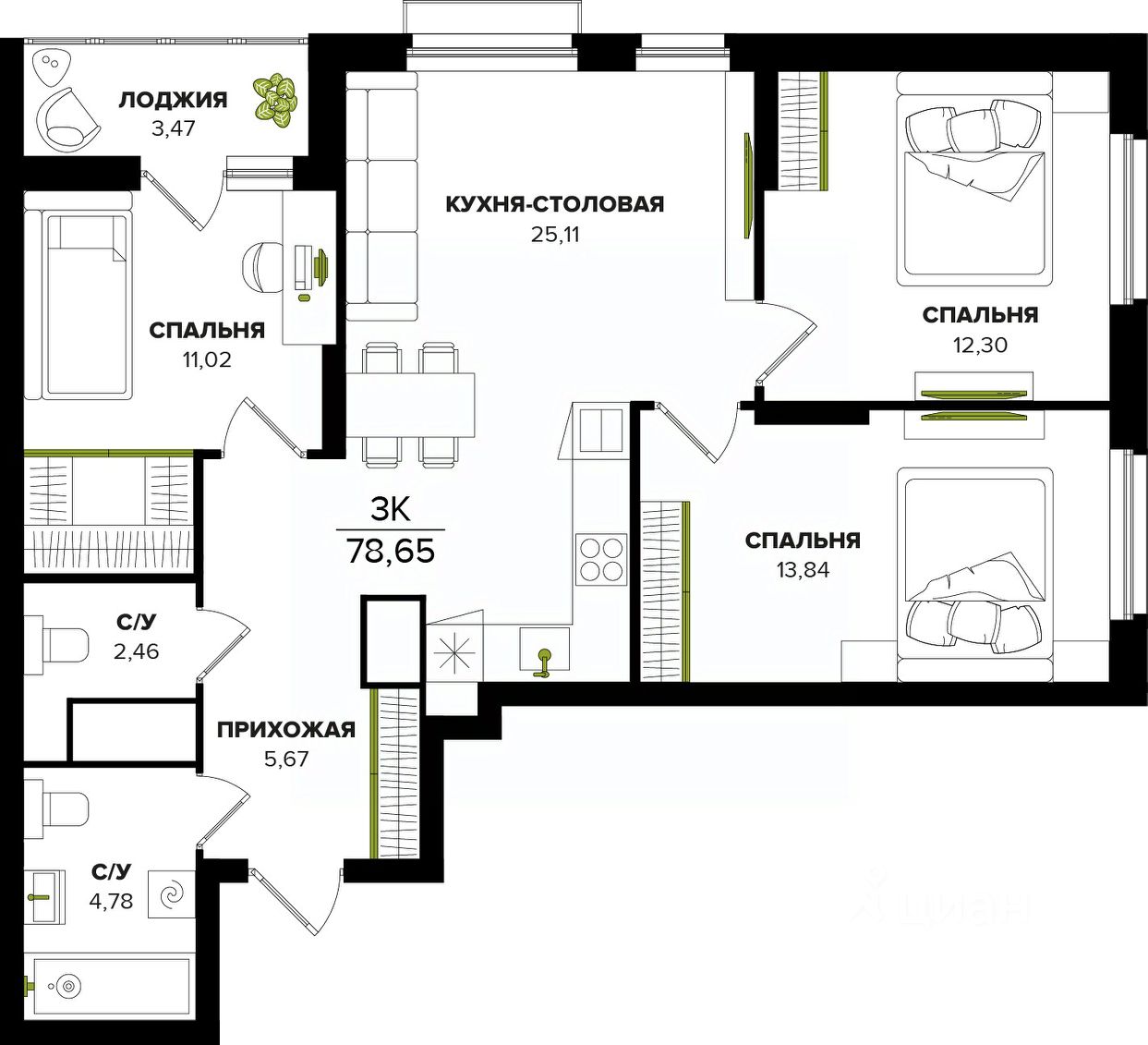 ЖК Семейный бульвар -3, ГП, 1, квартира 106