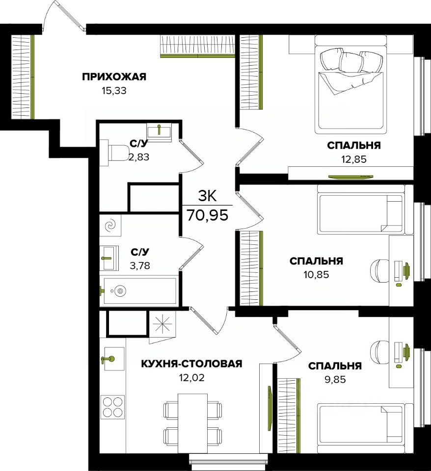 ЖК Семейный бульвар -3, ГП, 2, квартира 489