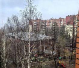Окна выходят во двор с видом на детский садик, что обеспечивает красивый вид простора и зелени деоевьев.