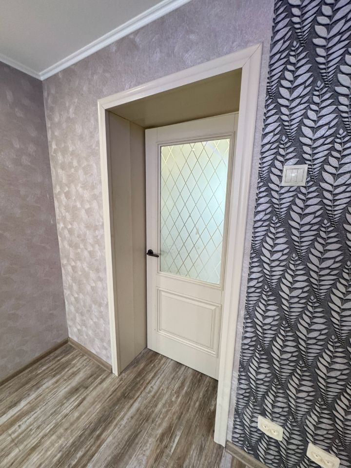 пол - качественный ламинат, в санузле, кухне и коридоре - керамогранит, новые радиаторы отопления и трубы водоснабжения, эл. разводка на всю технику отдельно, во всех комнатах натяжные потолки (сатин), зал и кухня две зоны освещения. Современные межкомнатные и входная двери.