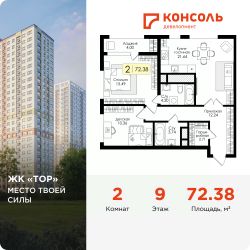 Продается двухкомнатная квартира 80 без отделки в ЖК "ТОР" площадью 72.38 на 9 этаже от застройщика Консоль девелопмент. Жилому комплексу ТОР присвоен повышенный уровень комфортности — комфорт плюс. Он подразумевает светлые просторные квартиры с большими окнами и удобной планировкой, оригинальные парадные и общественные пространства.