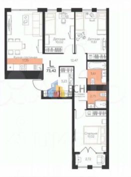 Входная дверь большие окна, просторная и светлая. Общая площадь квартиры 73.4 кв. м., жилая площадь 40 кв. м., (три изолированные комнаты) площадь кухни-гостиной 17.4 кв. м., Хорошая новая входная дверь. Отделка требует ремонта: пред чистовая отделка, электрика проведена, окна выходят в разные стороны, раздельный санузел, есть место под кладовку (гардеробную), застекленная лоджия.