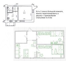 РИЭЛТОРАМ БЕЗ ПОКУПАТЕЛЯ ПРОСЬБА НЕ БЕСПОКОИТЬ Продажа от собственника. Отвечаю на звонки с 18:00 до 21:00, на сообщения в любое время. Прописан только собственник, выпишусь до сделки, долгов нет. Владение на основании договора купли-продажи. Планировка: Квадратные/прямоугольные комнаты без лишних выступов, забирающих жилое пространство Угловая В комнате два окна на достаточном отдалении, чтобы разделить пополам на две спальни по 9-10 метров с отдельными входами. Большая кухня, можно поставить диван и использовать как гостиную Ремонт по дизайн-проекту, поэтому учтена эргономика и грамотно распределено пространство. Перепланировки не было Окна на юг (1 окно) и запад (остальные окна), поэтому в квартире позже светает по утрам, но вечером дольше есть естественное освещение Под окнами клумба и газон, виден горизонт, деревья Отделка: Без визуального шума, износостойкая и легкая в реставрации, скрывает пыль. Коричневые, бежевые и белые тона, единое напольное покрытие без порожков в кухне, коридоре и ванной. Стены на кухне и в комнате окрашены моющейся краской по декоративной штукатурке, в особо пачкающихся местах белой, чтобы было дешевле обновлять ремонт. В ванной панели (не доделаны) и краска (влагостойкая по влагостойкой штукатурке). Балкон — дерево (вагонка) с пропиткой от гниения Полы в комнате — ламинат. Полы в остальной квартире — водостойкий полукоммерческий линолеум. Полы на балконе — дерево с пропиткой от гниения. Полы в квартире с перепадом не более 1 см, подходит для робота-пылесоса Новая проводка, трубы. Счетчик двухфазный на свет, счетчик на воду. Фильтр для питьевой воды. Все стены в квартире из красного кирпича, стены с соседями очень толстые. Балкон остеклен. В подъезде имеется место для колясок и велосипедов, на этаже есть кладовая. Вся мебель и бытовая техника, которая вам будет нужна, остается в подарок, без доплат. Все лишнее вывезем. Останутся стройматериалы для завершения ремонта, если нужно. (Кроме личных/памятных вещей. Мелкая кухонная техника остается по договоренности) В соседних квартирах есть жильцы только сверху и сбоку, адекватные люди, без маленьких детей и шумных животных. По сути можно доделать ремонт за месяц и получить квартиру с новым ремонтом, но без наценки за это со стороны продавца. У меня пока нет ресурсов закончить. Материалы для завершения все есть (сантехника, панели, люстра, led-подсветка, плинтуса и тп.), за исключением дверей. Заранее заложена возможность улучшения без лишних переделок (выводы коммуникаций под посудомойку, вытяжку, гигиенический душ. Оставлено место для продолжения гарнитура на другую стену, если будет нужно, продуманы места для хранения, места для розеток рассчитаны с учетом разных сценариев жизни) Хорошая транспортная доступность, рядом проспект Ленина. 10 минут на транспорте до Платоновского парка или ТГПУ Разумный торг допустим