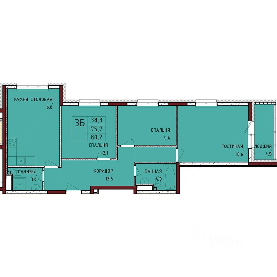 Общая площадь80,2 м²