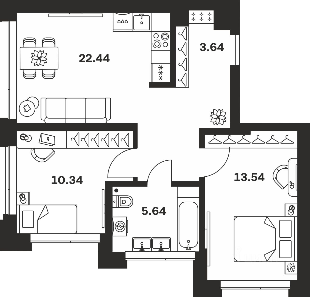 Общая площадь55,6 м²