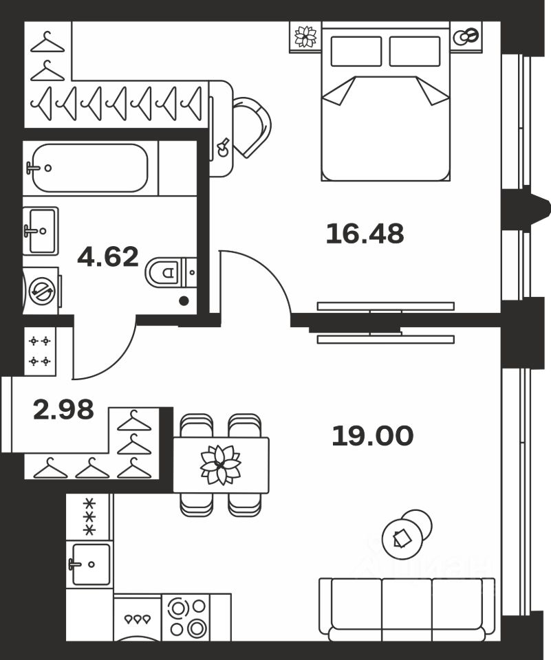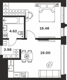 Общая площадь43,08 м²