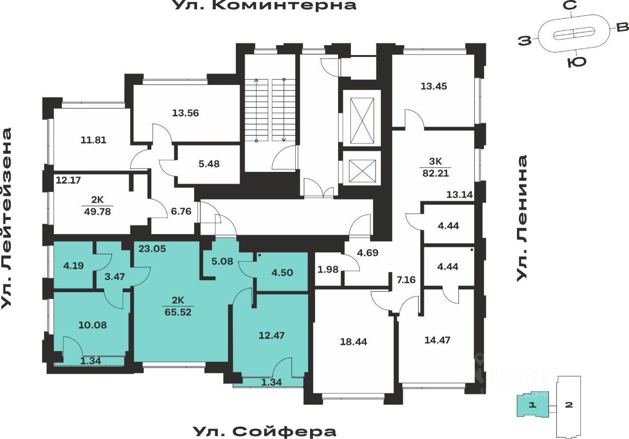 Общая площадь65,52 м²