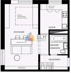 Номер в базе: 58669. Вашему вниманию предлагается в продажу 1-комнатная квартира, расположенная по адресу: